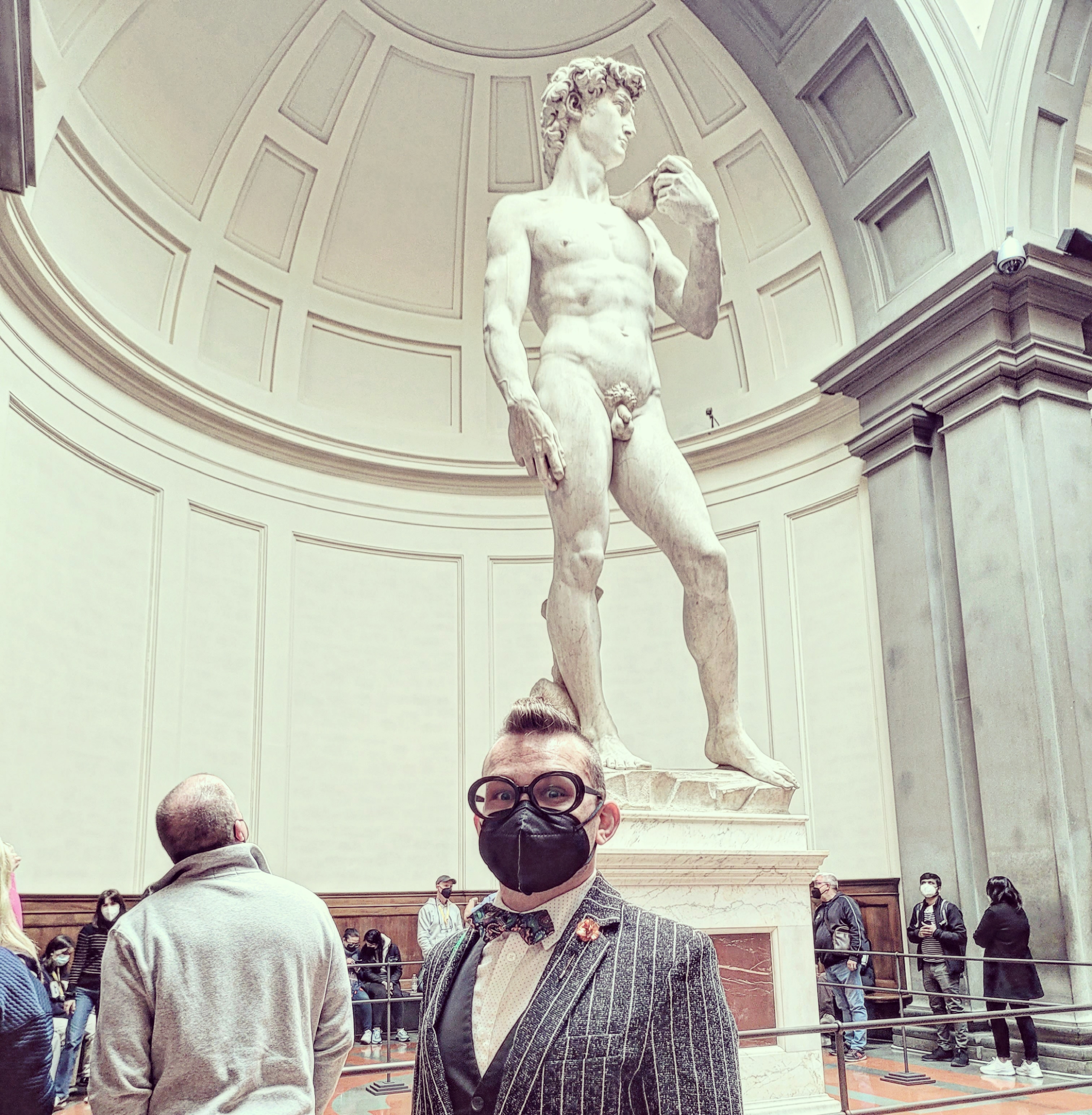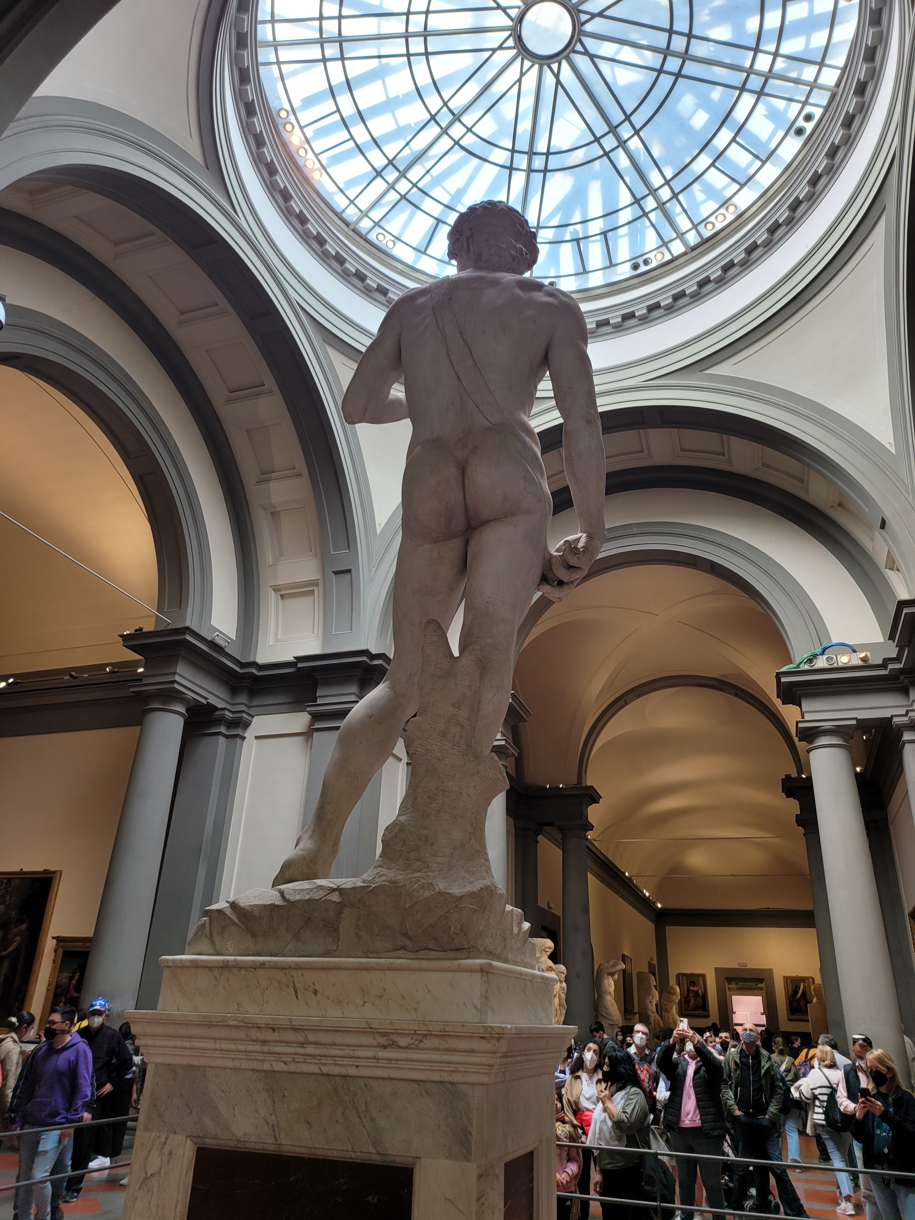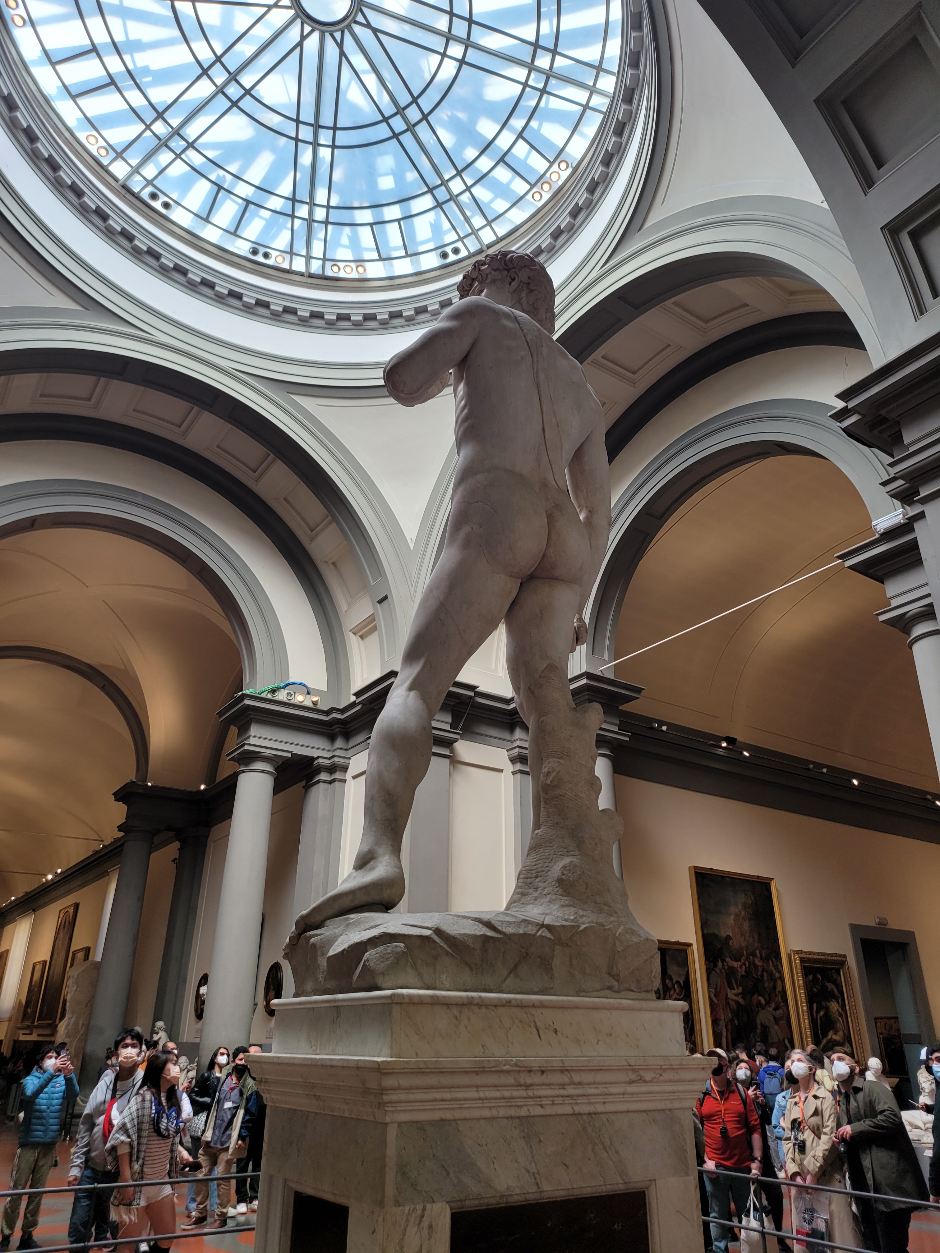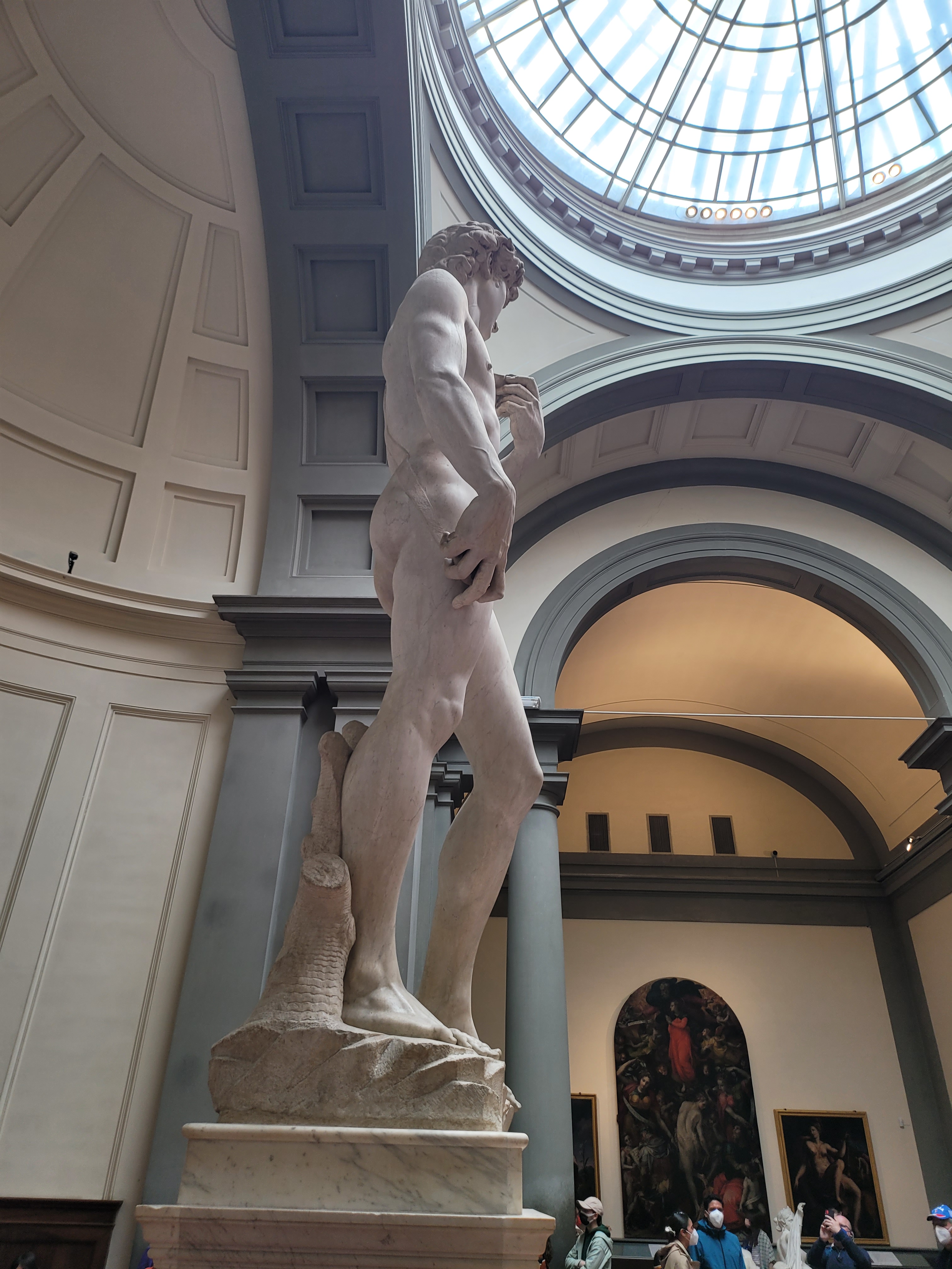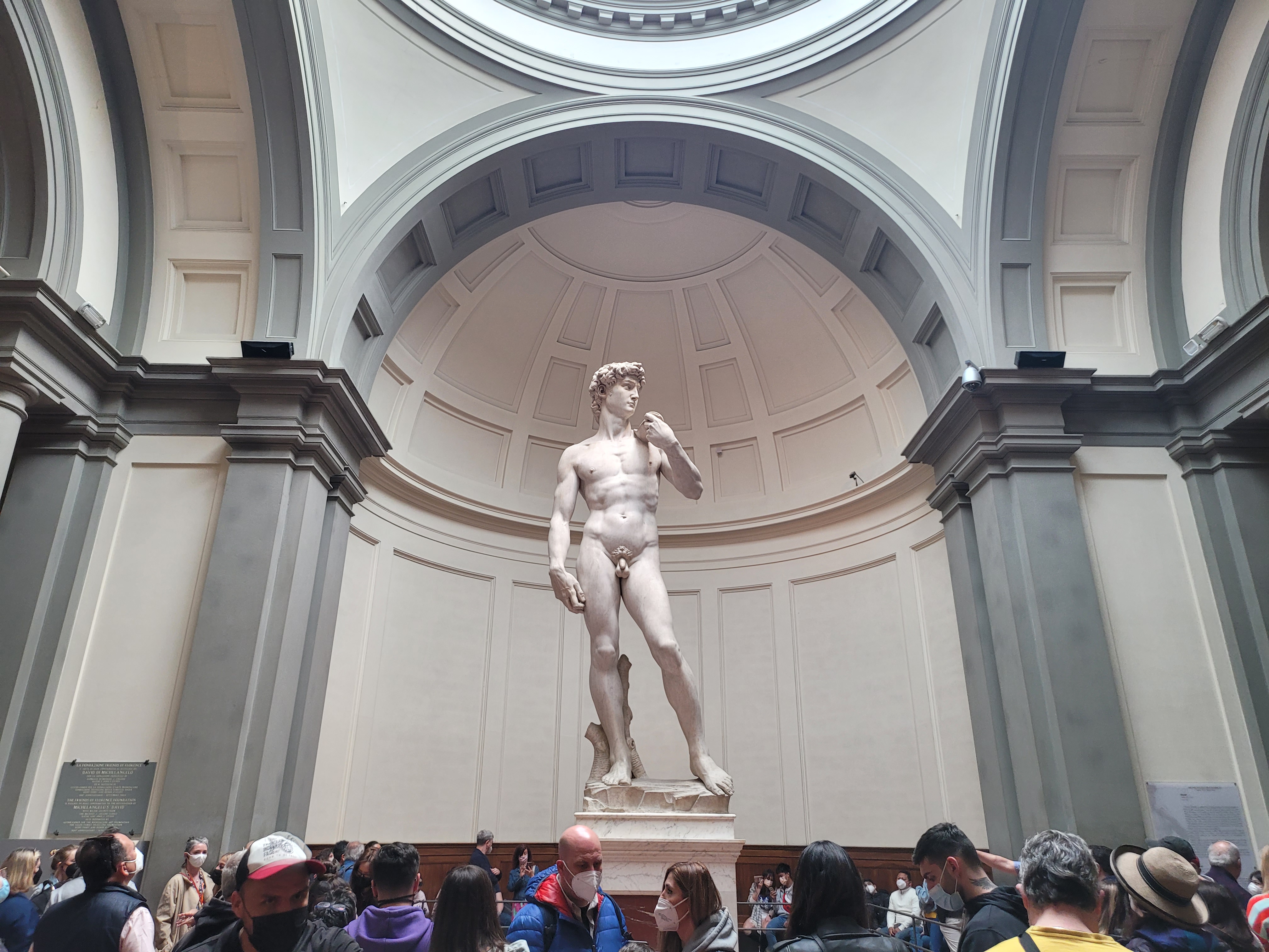 The next day was a bit of a blur, but I do recall us walking a few more miles, getting gelato around midnight, seeing the ridiculously crowded Trastevere area. The strawberry gelato made me feel alive, like coke but much more flavorful. The next morning, we were set to take the 5:55 train to Florence. We left the hotel around 4am to walk to Roma Termini station. The city streets were almost empty and, as in Paris, walking around the city that late always makes it feel more special, as you get to enjoy it all by yourself with no tourists in the way. As we were standing outside the station, Jay Tee was having a smoke and none other than Ilan passed with another friend catching a train too. We exchanged greetings, none of us actually being too alive at that hour. The train ride was beautiful, looking at the lovely countryside was gorgeous, I could never live that far away from the city, but the villages were very quaint. We arrived in Florence, Ilan and his friend got off there as well (small world, right?!). We wandered around the streets making our way to the Uffizi Gallery, which was spectacular. The gallery was a maze and a hike to get to the actual start of the tour. I think the layout was the only problem I had with the gallery. The first floors were all overly religious paintings, I never need to see another Madonna and Child again for as long as I live. Towards the end of the tour though I was overly excited to discover Medusa by Caravaggio. I have loved this piece for years, I even used it as one of my college projects design. Being able to see this incredible work in person was a real highlight for me. The other big piece (no pun intended) that was a requirement for me was Michelangelo’s David. We walked over to the Accademia Gallery and joined in a line that wrapped around the block. Tickets to get in were only 12 euros, but some shifty tour guides were selling tickets to skip the “3-hour line” and gain entrance right away. The line was only 45 minutes long, and worth the wait. David, this statue that I have admired for years was finally in front of me. So much grander than I could have ever imagined. The amount of detail that Michelangelo put into this great work is unparalleled. This needs to be seen by all, such an incredible work. We shopped, got some lovely trinkets, and headed to a bar. The Joshua Tree Pub, delightful and friendly staff. We grabbed a table to relax for the last hour before our train back to Rome. As the day was drawing to a close, regulars (with their kids) stopped in for a quick drink before heading home. Two women brought in their dogs with them, and I instantly fell in love. We boarded the train back and we both fell asleep; we had been up for some 38 hours by that point.