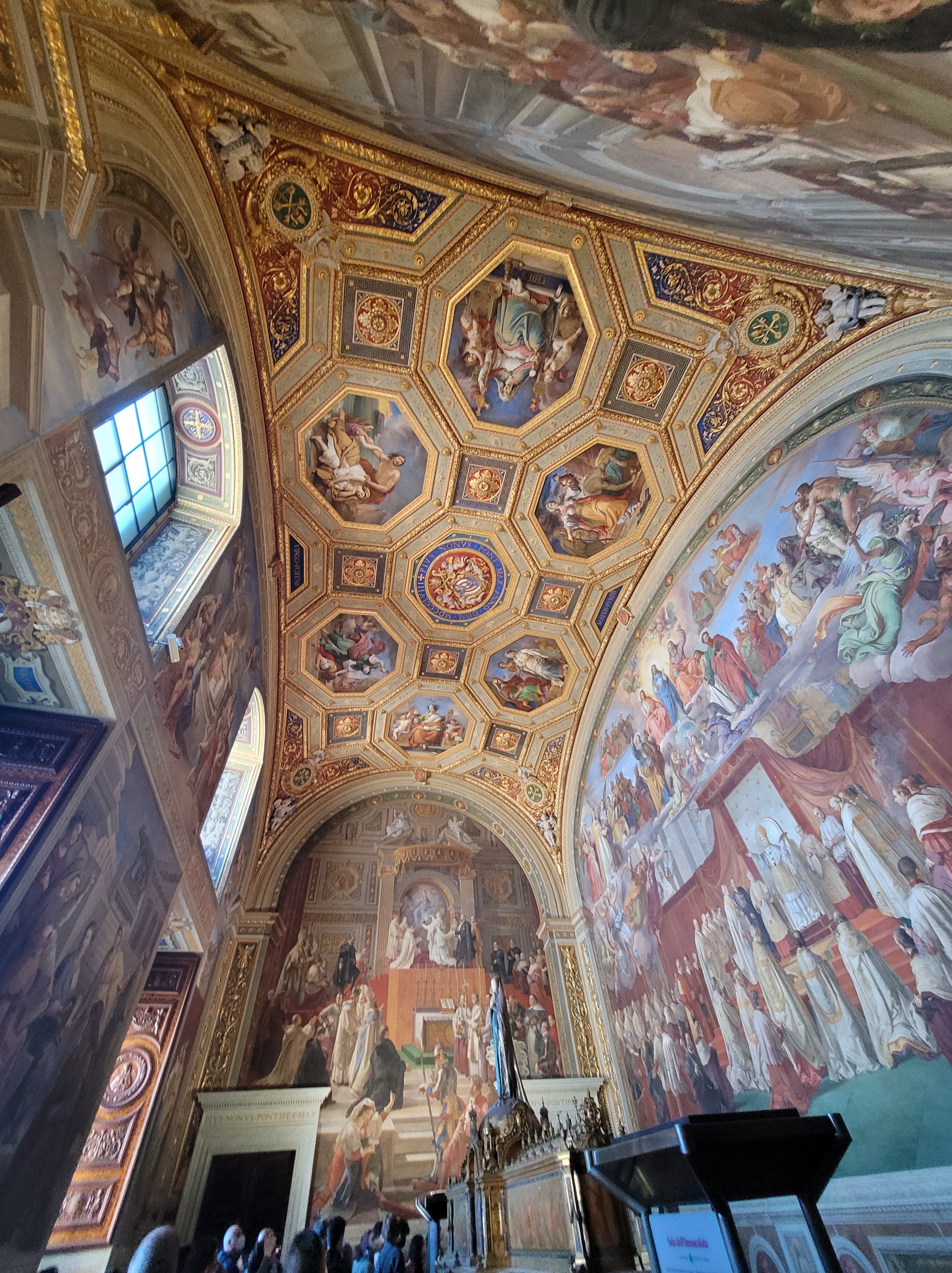 Tuesday was Vatican tour day. Although we got the VIP tickets with early entry, it didn’t feel that was as the place was crowded as can be. The tour guide was wonderful providing us with some interesting facts about the Vatican and everything we were admiring. The Sistine Chapel was gorgeous, unfortunately photos are forbidden, as was talking. A speaker would play overhead when people started to talk to tell them to shut up. I had fun pointing out all of the fig leaves of different colors that covered the once exposed genitalia of the male statues. It was pope pius IX who went around with a hammer and chisel to remove the male members from the Vatican as he didn’t want it to incite lust in the vatican…(so many jokes, so little time).